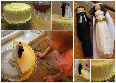 I made this wedding cake and the clothespin doll cake toppers for the occasion. Jess made punch and our friend Penny wore a bridesmaid dress. (Well, for a few minutes, at least). We had fun.